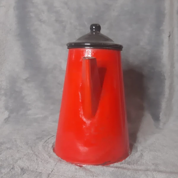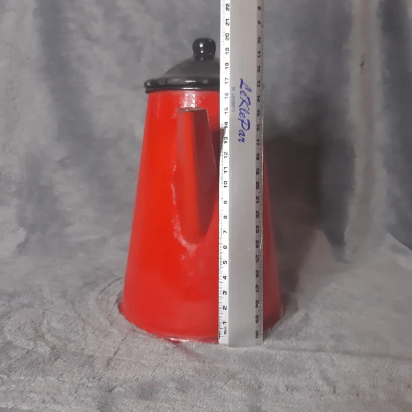 Jarra en peltre rojo vintage ideal para decoración, antigua alrededor de 1970, capacidad1 lt